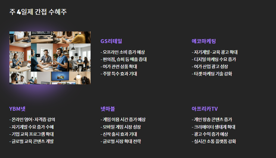 💼 주 4일제 간접 수혜주 (기대 확장형)