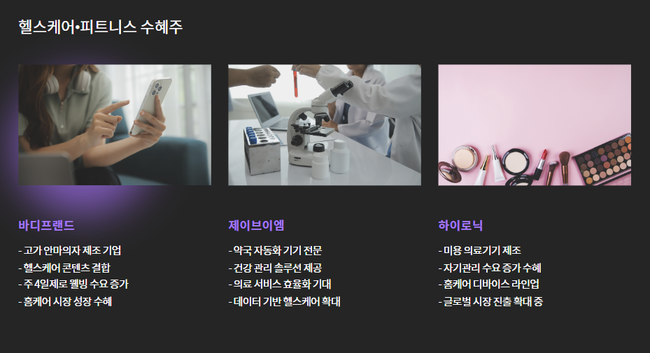 | 헬스케어·피트니스 | 건강 및 웰빙 수요 증가 예상 |
