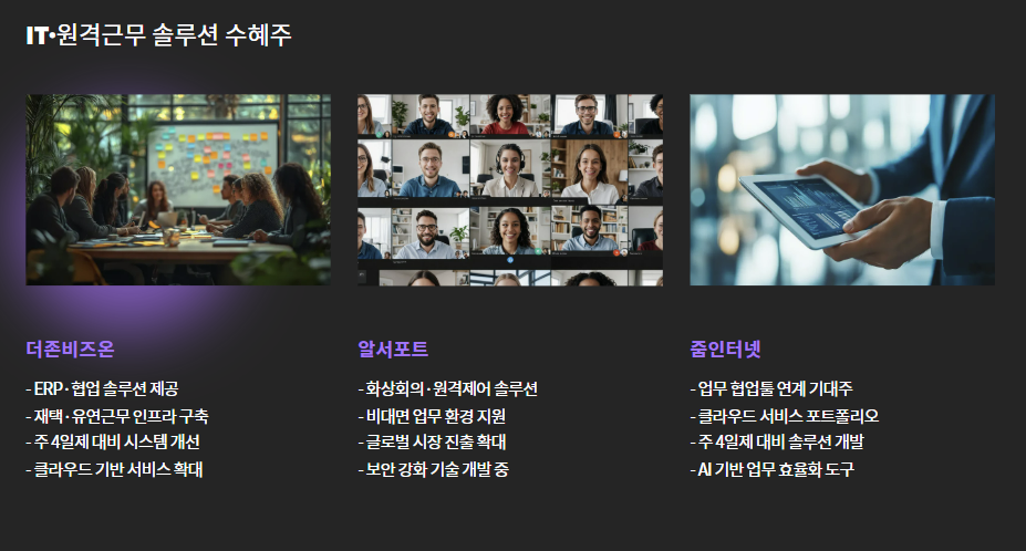 | 더존비즈온 | ERP·협업 솔루션, 재택·유연근무 인프라 구축 |