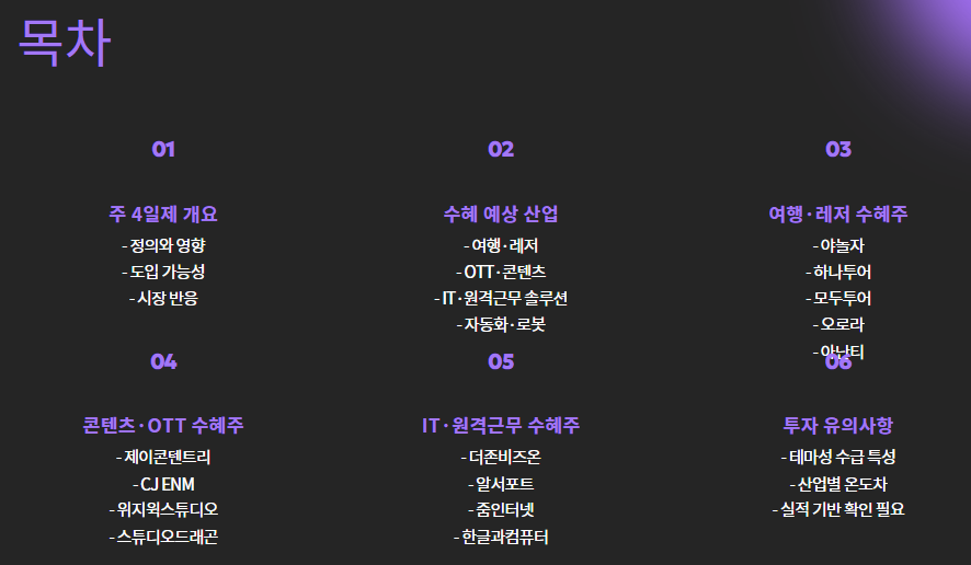주 4일제 관련 수혜주 정리|워라밸 확대가 불러올 주식시장 변화