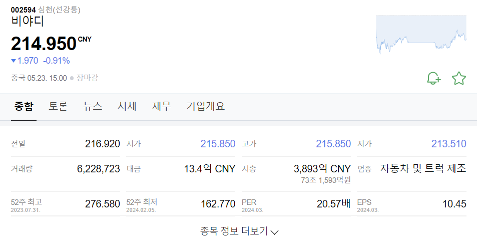 전기차 분야의 유망주 BYD