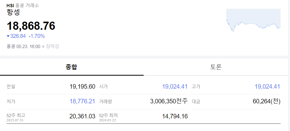 중국 항셍 지수와 주요 경제 지표
