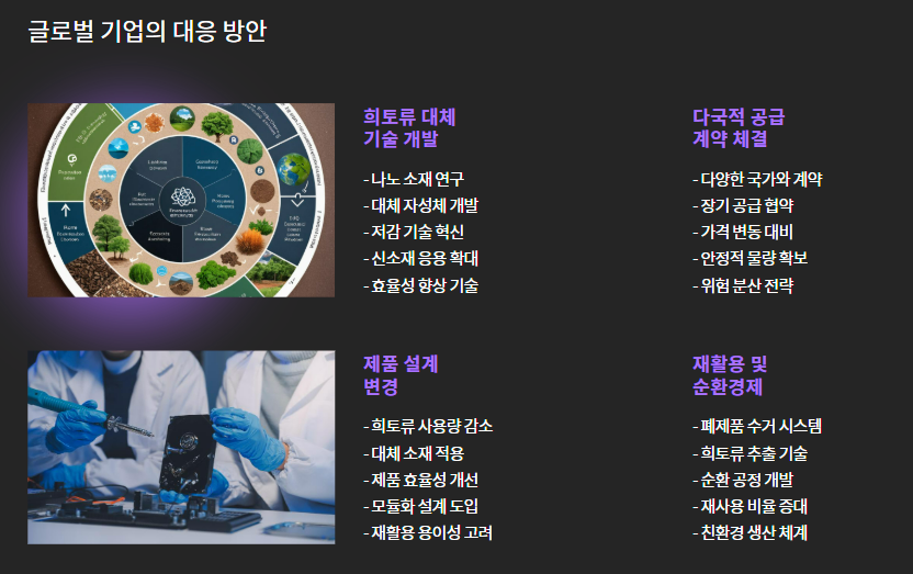 희토류 대체 기술 개발 및 다국적 공급 계약 체결 - 일부 기업은 제품 설계 변경을 통해 희토류 의존도를 줄이려는 시도