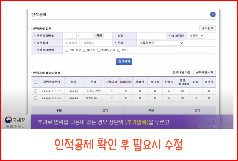 부양가족이나 공제 항목이 있다면 추가하여 입력합니다.