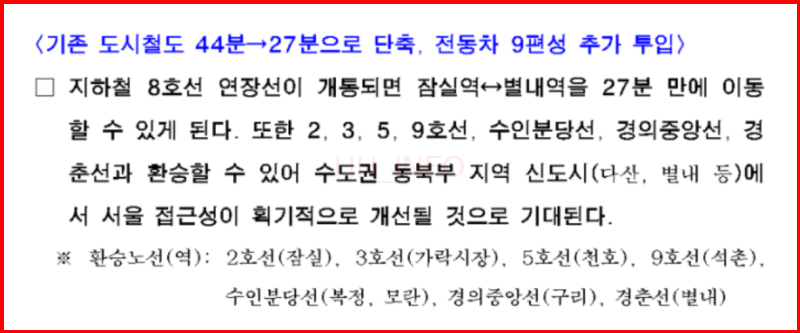 기존 별내에서 잠실까지 이동 시간이 약 44분에서 27분으로 단축될 예정입니다.