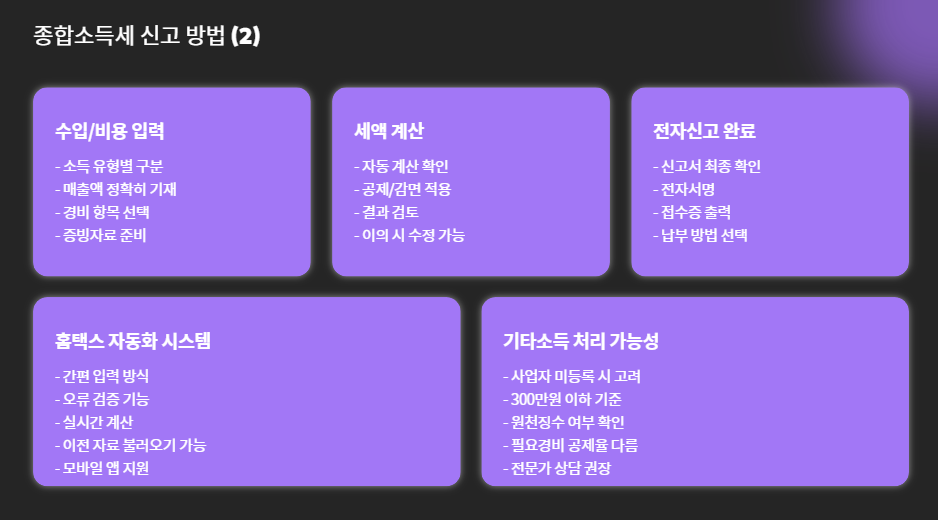 홈택스 자동화 시스템이 잘 되어 있어서 처음 해보는 사람도 어렵지 않게 따라 할 수 있어요.