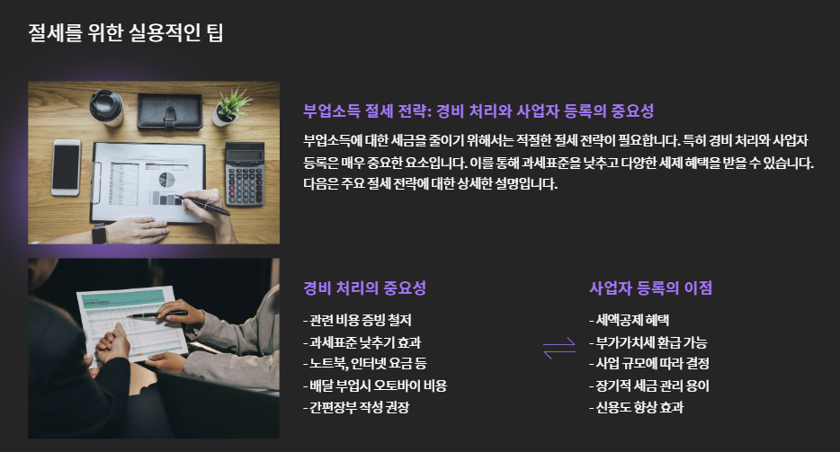 - 부업과 관련된 비용(장비, 교통비, 통신비 등)을 증빙자료로 남기면 과세표준을 낮출 수 있어요.