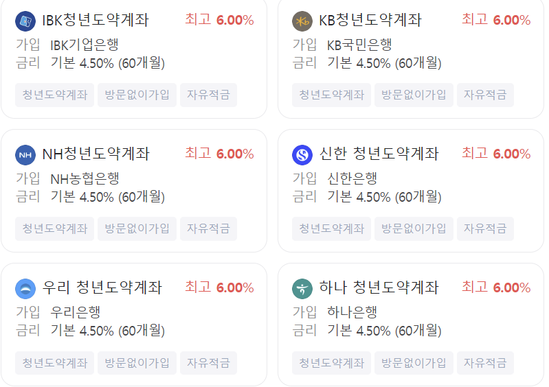 - 신청 방법: 신청 기간 동안 본인이 가입하려는 은행 앱을 통해 가입 신청 가능