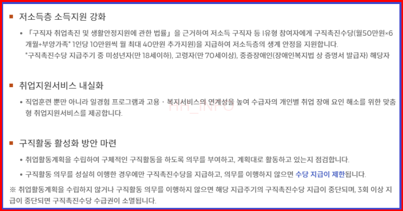 - 국가 또는 지방자치단체가 구직활동에 필요한 비용을 지원하는 수당이 월 평균 지원금액 50만원 이상이거나 총 지원액 300만원 이상인 사업에 참여 중이거나 수급 종료 후 6개월이 지나지 않은 사람