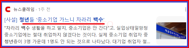 최근 청년들의 취업 눈높이가 높아져서 중소기업의 경우에는 취업을 하지 않는 경우가 많아졌다. 남들과 비교하는 SNS, 커뮤니티의 영향이 적지 않았겠지만 지금이라도 그것들을 끊고 본인을 위해 취업할 필요가 있다. 중소기업이라 할지라도 국가에서 중소기업 청년을 대상으로 소득세도 감면해 주고 주거 지원도 해주고 있다. 이러한 지원들을 받으면서 노력하여 공부하고 스펙을 쌓다 보면 자산도 모을 수 있을 뿐만 아니라 언젠가 대기업으로의 이직도 성공할 수 있을 것이다. 중요한 것은 아무것도 하지 않으면 아무 일도 일어나지 않는다는 것이다.
