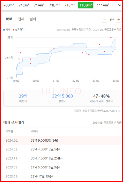 84㎡ 타입의 경우 청담동 인근의 청담자이 아파트는 같은 면적이 33억 원에 거래된 바 있어, 약 10억 원의 차익을 볼 수 있습니다.