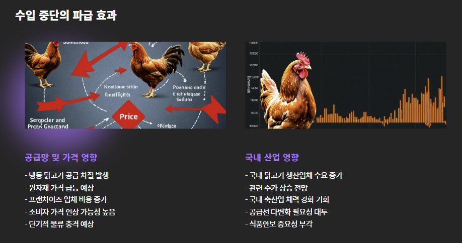 - 냉동 닭고기 공급 차질 → 원자재 가격 급등