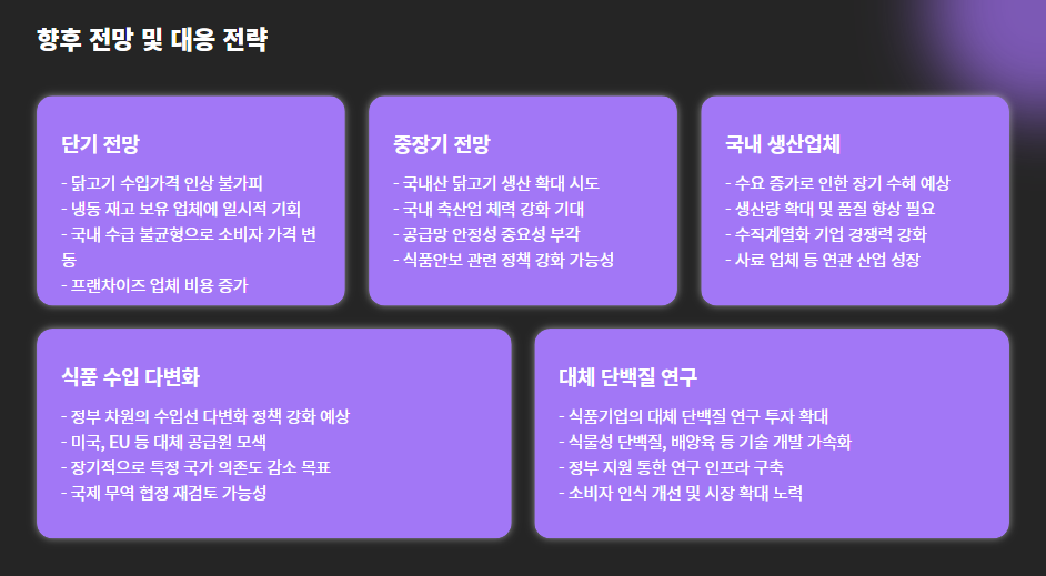 “이번 조치는 단기적 물류 충격을 넘어, 국내 닭고기 공급 체계에 대한 구조적 재검토가 필요한 신호입니다. 외식업계는 공급선 다변화와 비용 절감 구조 개선에 초점을 맞춰야 할 시기입니다.”