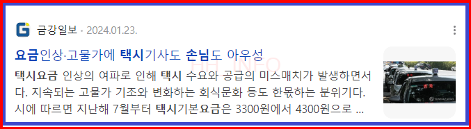4. 서울 및 일부 경기 지역의 택시비 인상된 요금