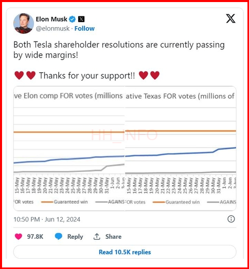 테슬라 이사회는 주주들이 머스크에 대한 보상안을 지지한다는 사실을 증명하기 위해 보상안을 재 승인하는 안건을 주총에서 투표에 부쳤어요.