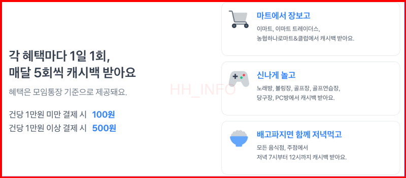 - 수수료 면제: 당행 및 타행 이체 수수료, ATM 입금, 이체, 출금 수수료가 모두 면제돼요.