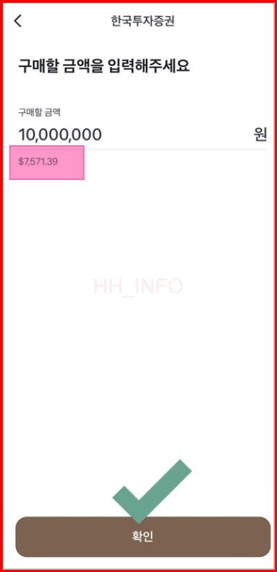 저는 약 1천만 원을 미국 국채에 투자했습니다. 환율은 10월 2일 기준으로 1,320.66원이 적용되었습니다. 구매 금액에 맞춰 환율이 실시간으로 변동되므로, 매수 버튼을 눌렀을 때의 환율이 적용됩니다.