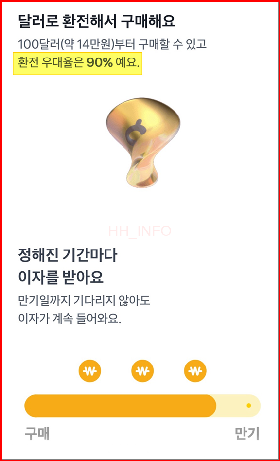 투자 기간이 종료되면 토스 뱅크를 통해 이자가 지급됩니다. 이때 환율 변동에 따른 손실이 발생할 수 있습니다.