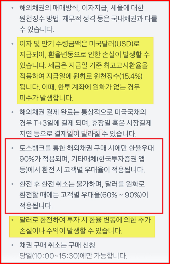 Q. 토스 미국 국채 투자 시 주의할 점은 무엇인가요?