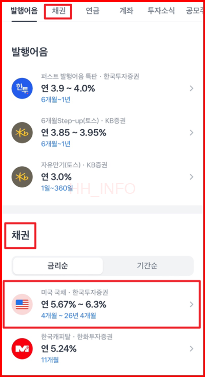 우선, 토스 미국 국채를 확인하는 방법에 대해 알아보겠습니다. 토스 앱을 열어서 '목돈 굴리기' 메뉴에서 '채권상품 구경하기'를 선택합니다. 거기서 채권 탭을 클릭하면, 금리순으로 정렬된 목록 중에서 미국 국채를 찾을 수 있습니다. 토스 미국 국채는 현재 최고의 수익률을 제공하고 있으며, 4개월부터 26년까지 다양한 기간으로 투자할 수 있습니다.