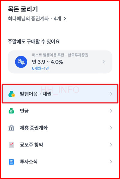 토스 앱을 통해 간편하게 구매할 수 있습니다. 목돈 굴리기 메뉴에서 채권 상품을 확인하고, 원하는 기간을 선택하여 구매할 수 있습니다.