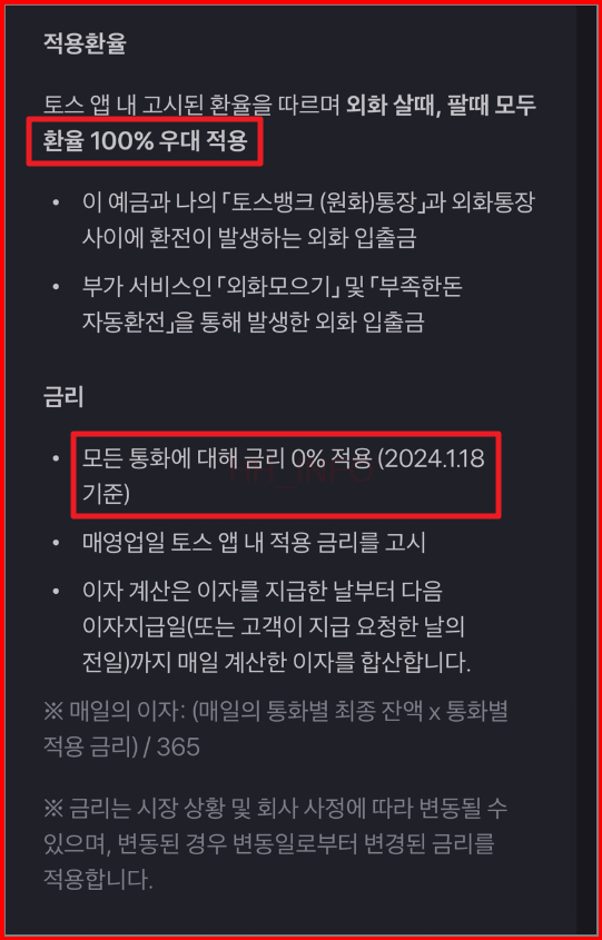 토스 뱅크 환율 및 주의사항