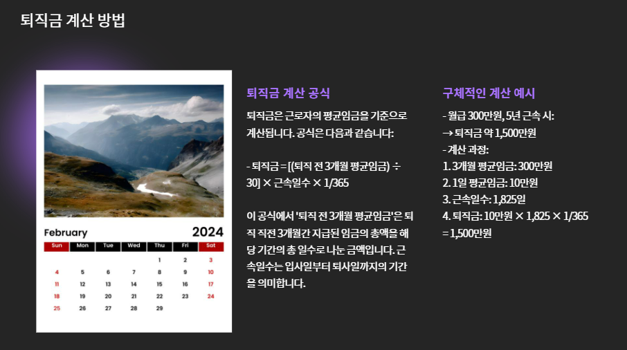 | 지급 조건 | 퇴직, 계약 종료 등 근로 종료 시 |