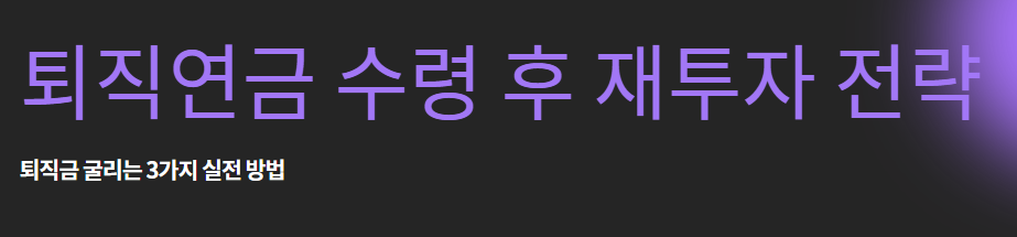퇴직연금 수령 이후 고려할 수 있는 3가지 재투자 전략