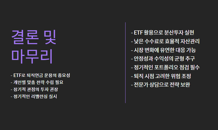 즉, 퇴직연금 계좌에서도 ETF를 통해 분산 투자와 리스크 조절이 충분히 가능합니다.