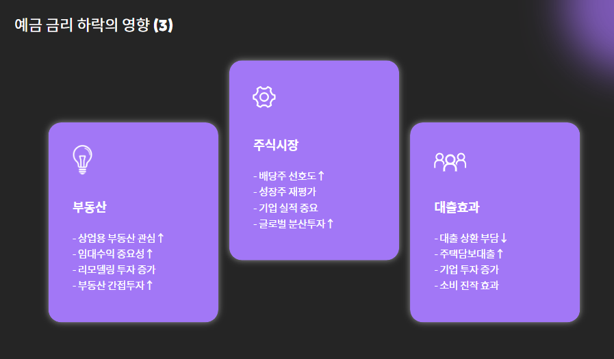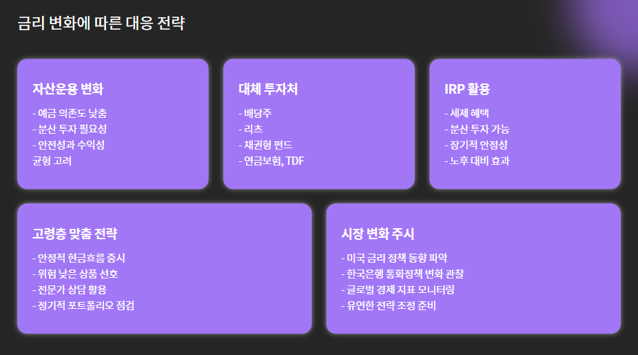 | 이자 수익 영향 | 비교적 안정 | 이자 수익 감소 → 재테크 필요성 ↑ |
