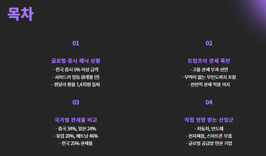- 트럼프의 관세 폭탄으로 글로벌 증시가 흔들림