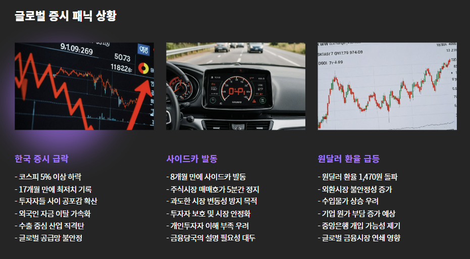 한국 증시는 5% 이상 급락, 8개월 만에 사이드카까지 발동됐고,