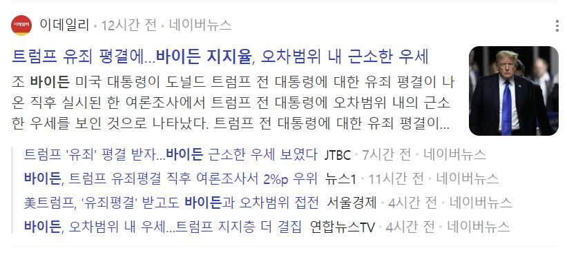 트럼프 바이든 관련주 지지율 재판결과 배심원단