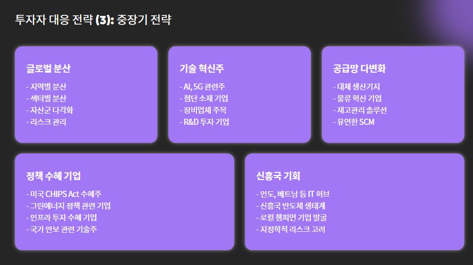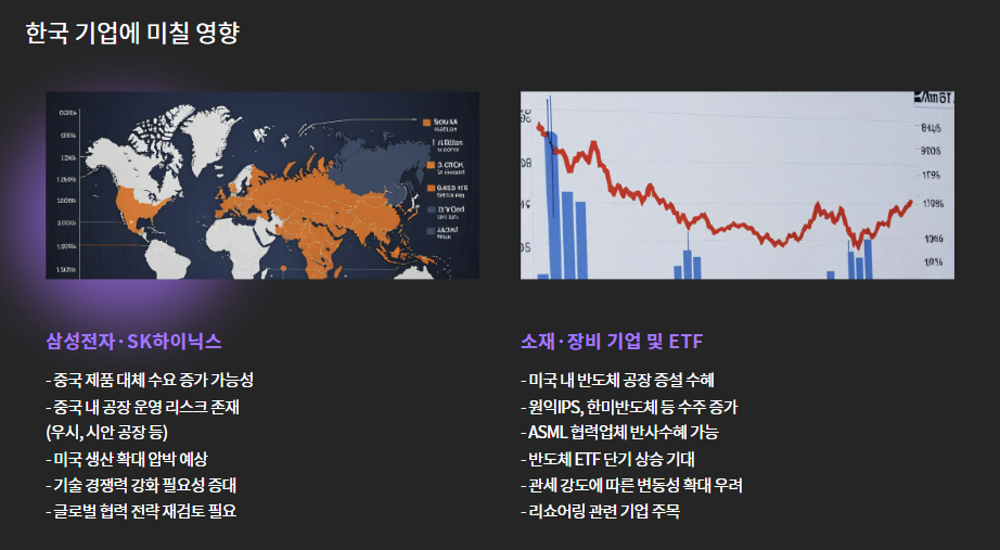 | 한국 기업 | 반사이익 가능성 있지만, 공급망 불확실성 증가 |