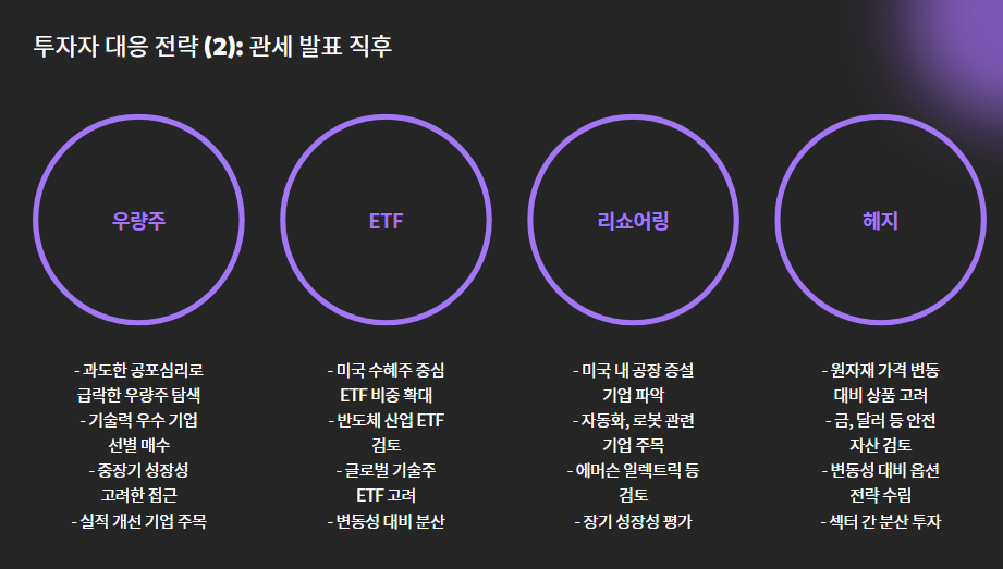 관세 확대는 글로벌 공급망 충격 → 시장 전반의 불안정성 증가로 이어질 수도 있습니다.