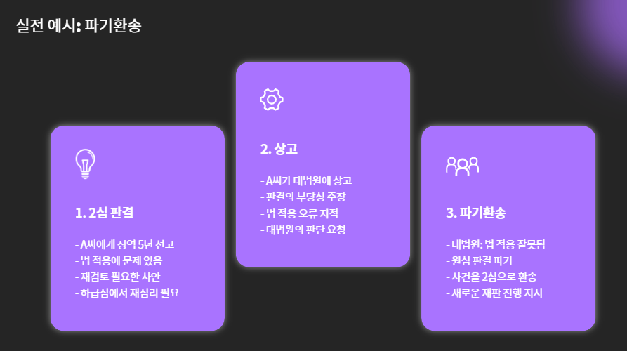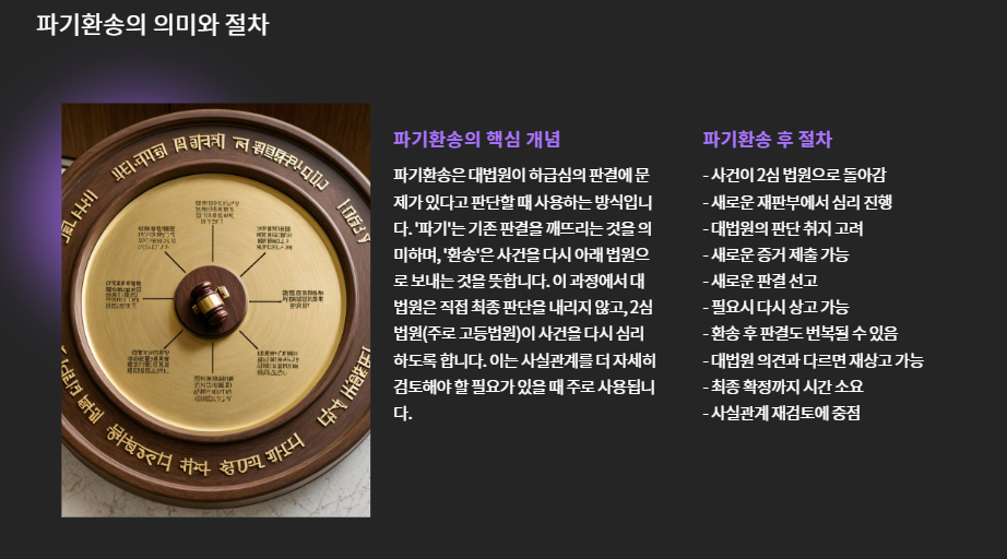 - 파기환송: 대법원이 하급심 판단을 깨고, 다시 재판하게 보낸 것