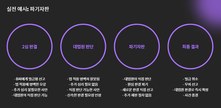 - '파기' = 기존 판결을 깨뜨림 (무효화)