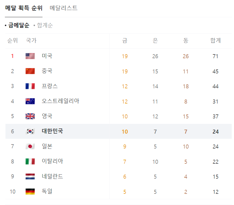 파리올림픽에서 대한민국 선수들이 보여준 놀라운 성과는 앞으로도 오랫동안 기억될 것입니다. 앞으로 남은 경기에서도 좋은 성적을 기대하며, 대한민국의 올림픽 역사에 또 다른 금자탑을 쌓아가기를 바랍니다.
