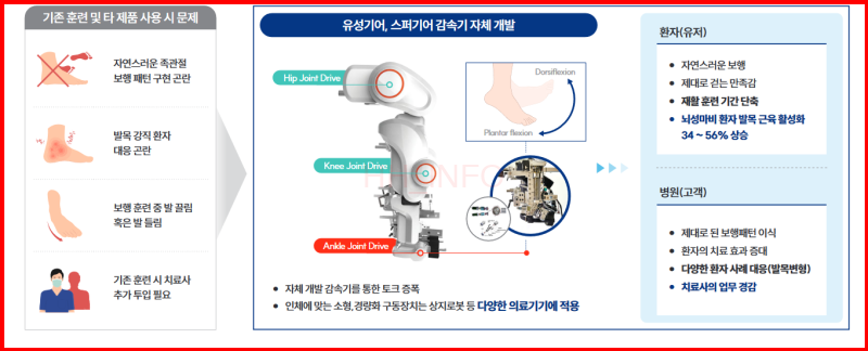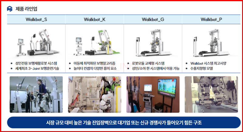 - 주력 제품: 워크봇 (뇌졸증, 척추손상, 소아마비 환자 대상 보행 훈련 로봇)