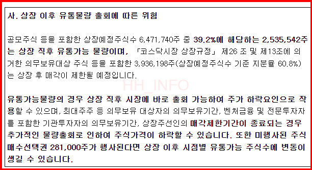 - 유통가능 주식 수: 약 39.2% (상장 이후)