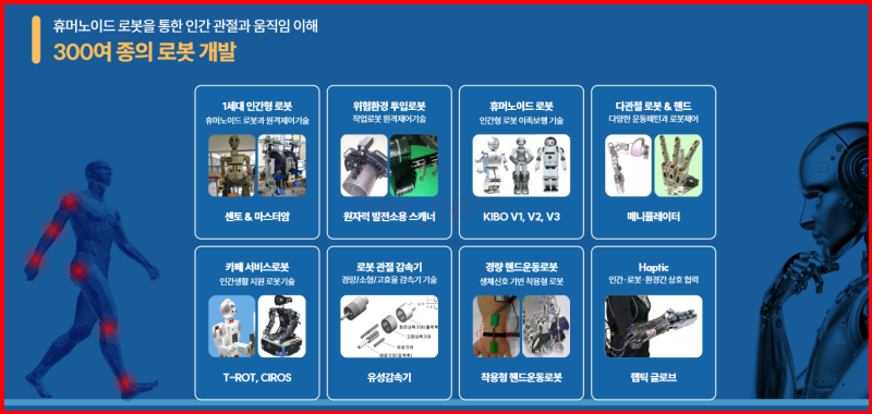 - 주요 제품: 휴머노이드 로봇, 햅틱 기능 로봇, 보행재활로봇 워크봇