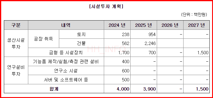 - 시설투자와 연구개발 투자에 대부분 사용