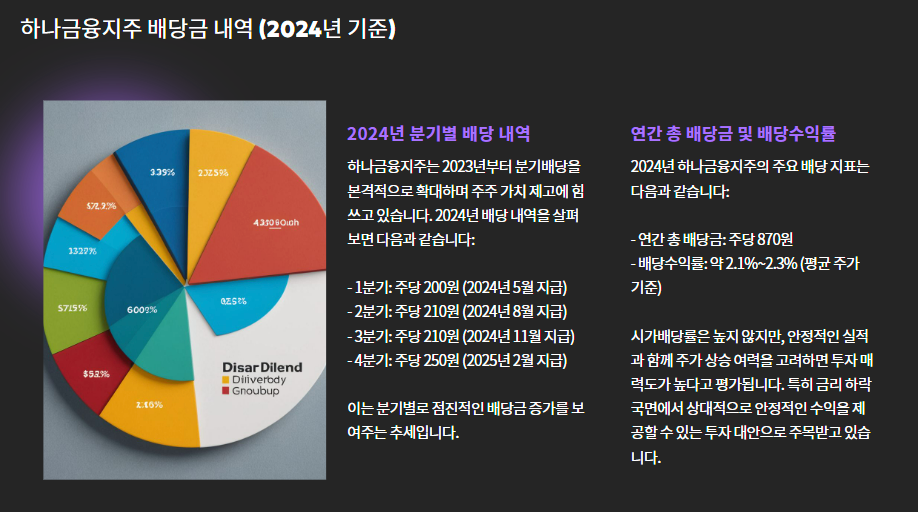 하나금융은 2023년부터 본격적으로 분기배당을 확대하며, 연간 배당금을 점차 늘리고 있는 추세입니다.