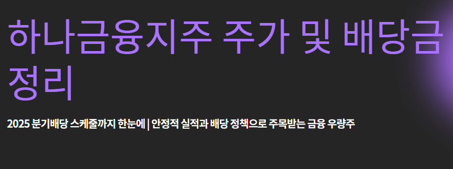 이번 글에서는 2025년 기준 하나금융지주의 주가 흐름, 배당금 내역, 분기배당 일정, 그리고 투자 포인트까지 한 번에 정리해드립니다.