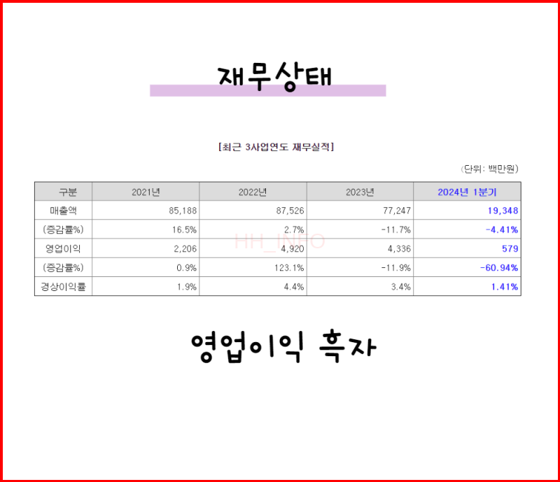 하이젠알앤엠의 영업이익은 흑자입니다. 매출 성장세는 완만하지만, 안정적인 이익 규모를 유지하고 있어요.