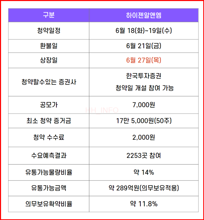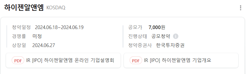 안녕하세요 여러분! 오늘은 하이젠알앤엠의 투자설명서를 분석해볼게요.