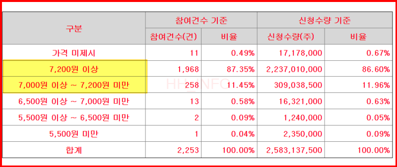 희망공모가 밴드는 4,500원에서 5,500원이었는데요. 기관투자자들 중 87% 이상이 7,200원 이상을 제시했어요. 그래서 최종 공모가는 7,000원으로 확정되었습니다.