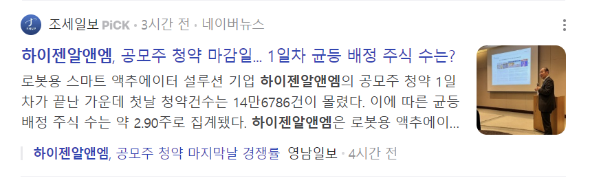 [서울=뉴시스] 김경택 기자 = 로봇용 스마트 액추에이터 솔루션 기업 하이젠알앤엠은 국내외 기관투자자를 대상으로 수요예측을 진행한 결과 최종 공모가를 희망 밴드 상단을 초과한 7000원으로