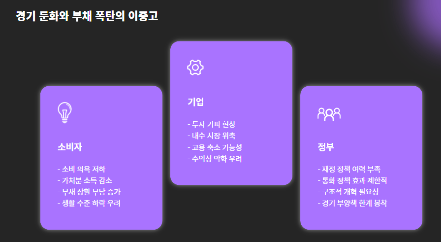 | 카드·신용대출 증가 | 소비성 대출 증가 → 소비 여력 더 감소 |