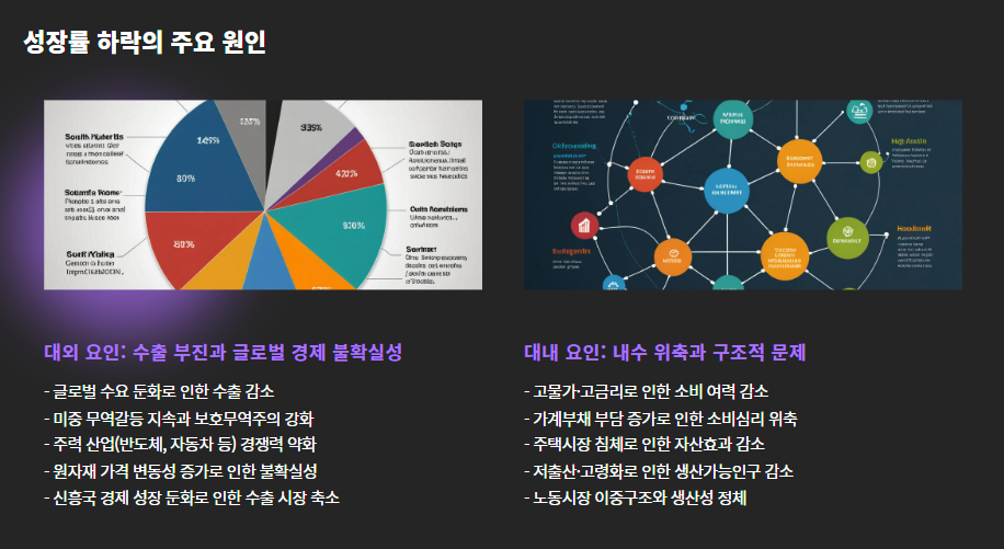 - 수출 부진: 반도체 회복은 시작됐지만 글로벌 수요 둔화